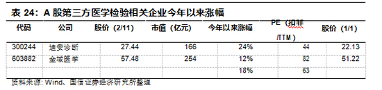ICL 行业相关标的今年以来有一定涨幅,第三方医学检验实验室较医院有规模成本优势、检验项目齐全,行业格局清晰,未来将在中国医疗卫生体系中发挥更重要   的作用,继续推荐龙头公司迪安诊断,关注金域医学。