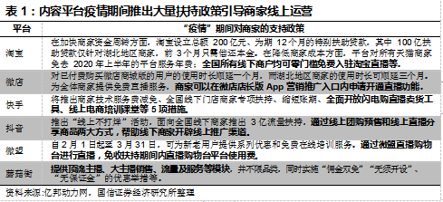 同时,在这次疫情中我们也看到各大内容平台在针对受到本次疫情影响的商家扶持政策中,几乎均提到了积极通过直播短视频带货的方式帮助商家恢复经营。因此我们预计在疫情事件的催化影响,以及平台的积极推动下,今年短视频/ 直播电商将得到更加广泛的应用,有望逐步成为品牌布局电商渠道的主流方式之一。