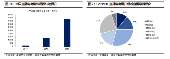 2019 年,网红电商在直播带货的推动下,网红产业化和商业化运作空前。2019年“双十一”当天,薇娅直播间观看人数为 4315.36 万,李佳琦直播间粉丝数量为 3683.5 万,当天销售额甚至能达到上海知名商圈一年的销售额。
