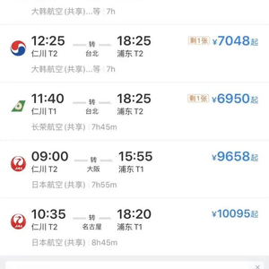 此外,机票涨幅较大的基本都是临近日期的航班,而3月从首尔来沪的机票价格则仅需千元左右。