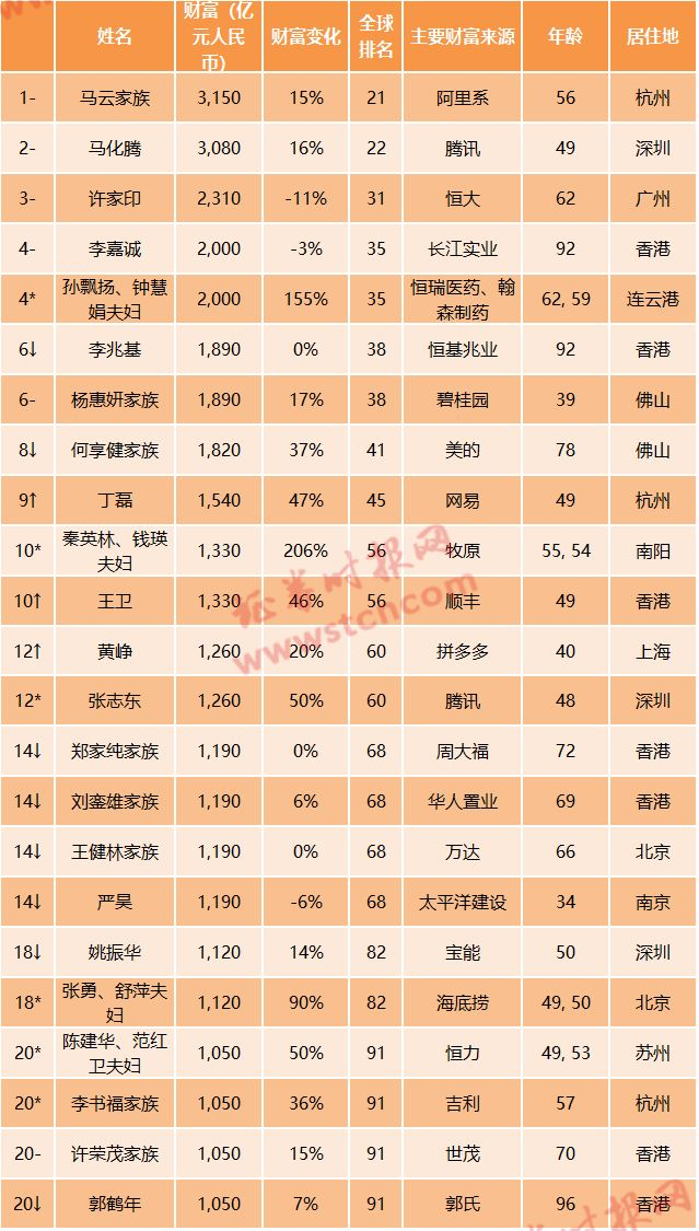 胡润全球富豪榜出炉!来自71个国家、2182家公司的2816位十亿美金企业家登上《2020世茂深港国际中心·胡润全球富豪榜》。