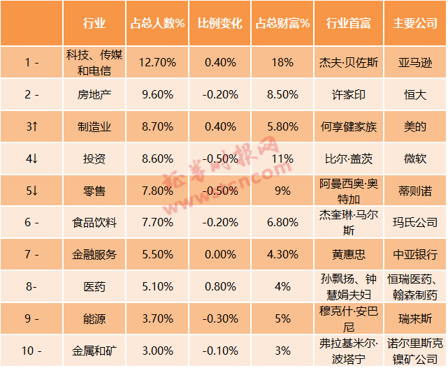 想要成富豪,科技行业是首选