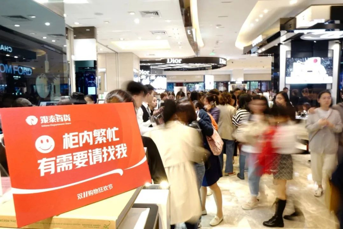 2019年双十一期间,武林银泰线下店内人头攒动。