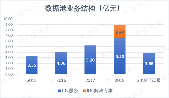 数据港的收入来源主要为数据中心托管服务收入及数据中心EPC总包收入,此处用的是其全部营业收入。