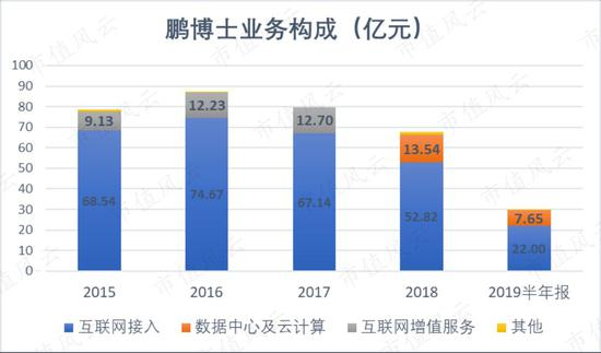 2017年及以前,鹏博士IDC业务是计算在“互联网增值服务”以内的,2018年单独列出互联网增值服务仅占比0.3%,因此考虑到IDC业务占比极大,我们将2017年及以前的互联网增值服务收入视为IDC收入;