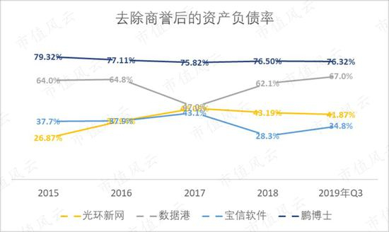 然而,光环新网和鹏博士在资产端存在较大金额的商誉,由于该项目并非具有真实价值的资产,实际资产负债率其实更高。