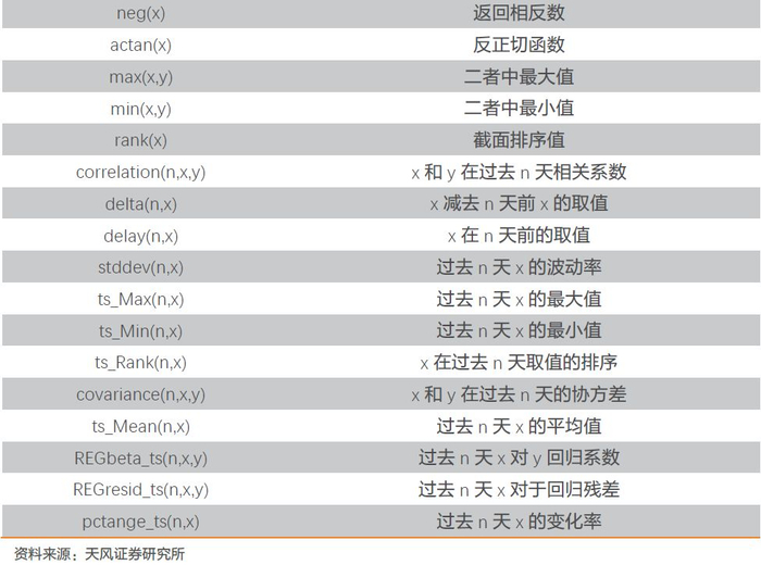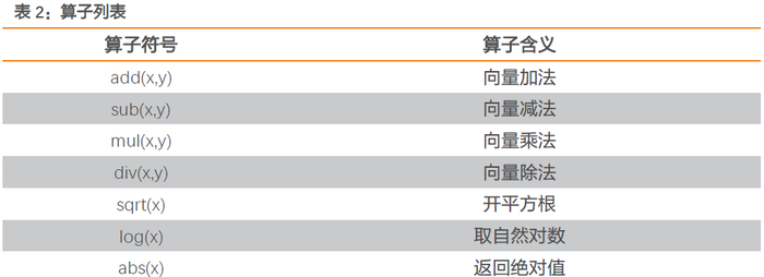 成交量等就是终结符;另一种是函数符,可以表示运算符或函数操作,例如+,log 等都属于函数符。如前文因子树图中所展示,公式树由特征和算子两部分组成。在本文中,特征是我们输入模型的基础数据,即每只股票所拥有的量价信息。本文用以构建因子的量价数据包含股票在K线图上的开盘价、最高价、最低价、收盘价、均价、成交额、成交量共7类数据类型。