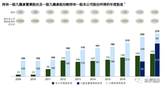 2)九龙仓置业股份及九龙仓股份带来较高的股息收入以及现金回报。参考九龙仓置业自2017年从九龙仓分拆上市至今,以及九龙仓及本公司自2009年至今的实际现金股息往绩纪录,协议安排股东在持有一股九龙仓置业股份及一股九龙仓股份的情况下,本应收取的综合股息与持有一股会德丰股份相比,收入明显较高。