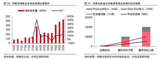 Solar Roof短期年化收入有望达18亿美元,户用能源系统收入远期预期200-400亿美元。在不考虑配套家庭储能系统的情况下,预计Solar Roof短期安装目标对应年化收入在18亿美元左右,考虑成本将逐步下降,最终目标对应年收入区间有望达150-300亿美元;若考虑每家用户配套Powerwall2储能系统,最终安装目标对应Powerwall年收入区间有望达50-100亿美元,家庭光伏能源系统业务整体目标年收入区间有望达200-400亿美元,占2019年公司总营收的80%-160%,能源业务增速或超电动汽车业务,将成为特斯拉的主要业务之一,迎来加速扩张。