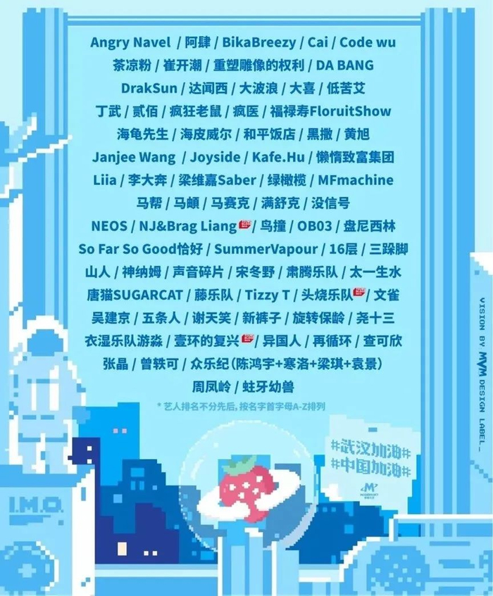 例如2月4日-8日举办的“宅草莓音乐节”,啊不,“宅草莓不是音乐节”,俗称“云蹦迪”。连续五天累计40小时的直播,一大堆各路风格的歌手/团体,具体名字我就不点了,下面都写着呢。在现实中,他们曾经在同一个音乐节表演过吗?就算有的话,出场费肯定也会高的不可思议吧。
