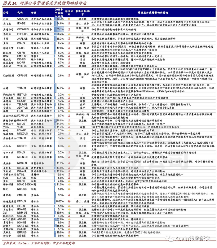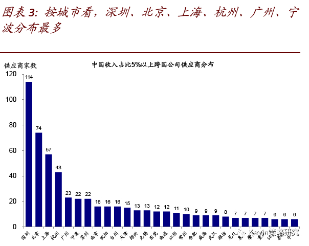 需求端的影响相对容易度量(如来自中国收入的敞口),但对供应链的扰动则较难观测。因此,我们在本文中尝试梳理主要跨国公司在中国的供应链情况,以给投资者提供一定参考。
