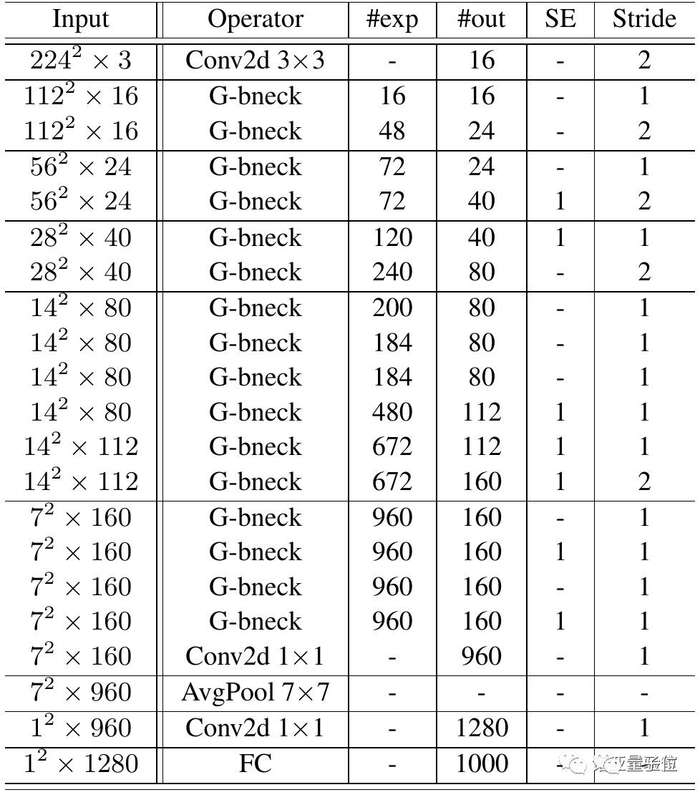 最后,会利用全局平均池和卷积层将特征图转换为1280维特征向量以进行最终分类。SE模块也用在了某些Ghost bottleneck中的残留层。与MobileNetV3相比,这里用ReLU换掉了Hard-swish激活函数。