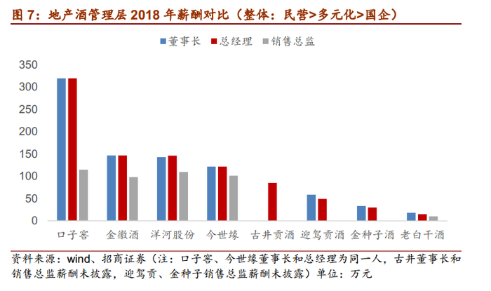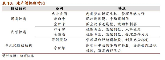 1)地产酒国有企业居多,如古井贡、金种子、老白干等,其中古井贡管理层能力最强,08年整改后优化人员结构与绩效体系,提升内部效率,焕发新的生机,老白干和金种子混改进展较慢,高管及员工平均薪酬远低于其他酒企,激励机制较弱。