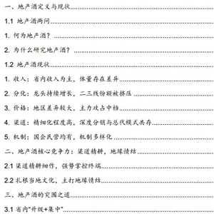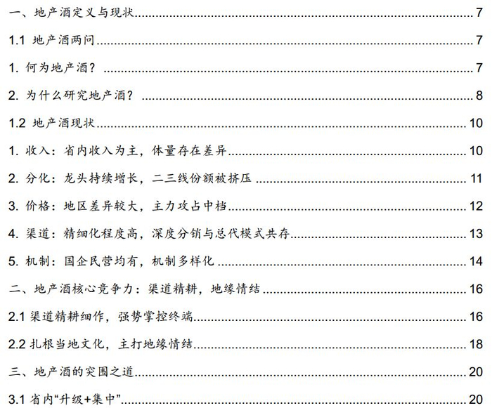 地产酒是酒行业重要组成部分,本轮白酒周期,地产酒龙头增长迅猛,表现亮眼。经过了几年的高增长后,市场对其未来的发展空间及增长的持续性较为关心。我们结合多地调研与思考,本篇报告系统的梳理了地产酒当前的现状、竞争格局及未来的突围之道,对省内发展及省外扩张均做了详细讨论与分析,并基于此提出投资建议。