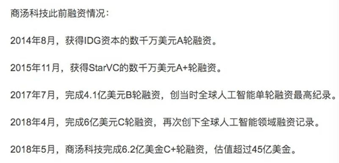 作为全球最大的人工智能初创企业,商汤科技正式成立于2014年11月,但其在此前的8月就已获得了IDG资本数千万美元的A轮融资;2015年11月,商汤科技获得 StarVC 的数千万美元 A+轮融资。