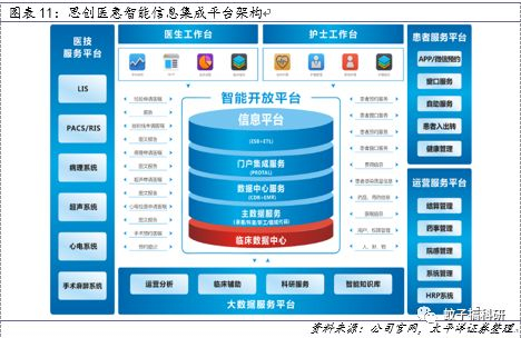 公司前瞻性布局智能信息集成平台。公司的业务围绕“平台+微小化应用”的模式,包含围绕医院核心系统的智能信息集成平台、围绕智慧物联建设的物联网开放平台等,平台的优势在于将系统由串联转向并联,可有效提高数据传输效率,沉积数据做统一的数据管理和分析,医院在平台的基础上,可以根据需求增加或删减应用模块,便捷高效。