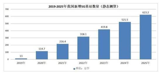 中信建投通信行业首席分析师阎贵成预测算,未来5G基站建设到2025年要超过600万个。