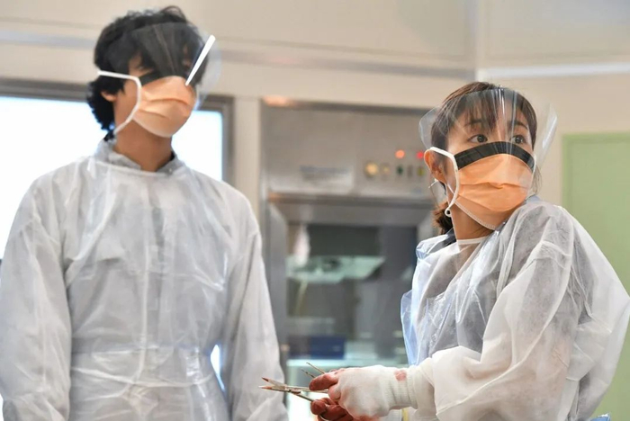 与普通尸检相比,新冠肺炎患者的遗体依然存在传染性,因而刘良团队做的防护级别更高——戴三层手套,两层口罩,帽子也有三层,最后是护目镜加上防护屏。至于身上的防护服,密封性也更高,不透风不透气。参与解剖的人把全身暴露的位置都给封闭了,才算防护到位。