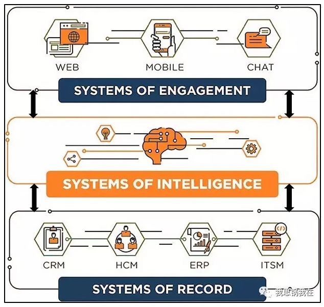 这张图不仅让我想到“中台”的概念,还想起曾投资过Cloudera、Docker等明星企业服务公司的风投机构Greylock提出的一个概念叫“Systems of Intelligence(智能系统,如下图)”。我认为这将是新一代企业尤其是AI公司构建护城河的基础。