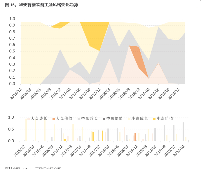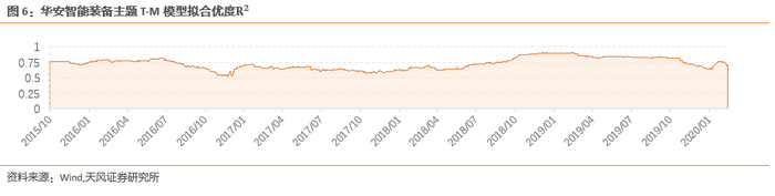 根据T-M模型的分析结果,华安智能装备主题2015年10月至2016年底,以及2019年7月至2020年初期间内展现了显著的正向的选股能力,在2018年上半年以及2019年上半年展现了正向的择时能力。