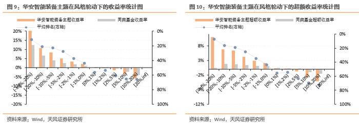 根据图7以及图8,自有效起始日期以来,华安智能装备主题在市场近20日涨跌幅达到10%以上的情况下表现尤其出色,同类同期排名可上升至前20%以内。
