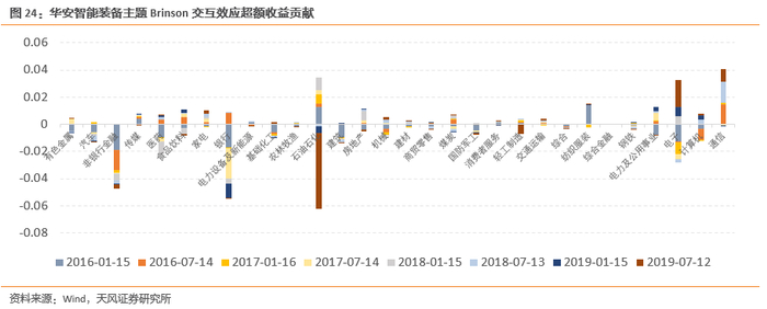 可以注意到,华安智能装备主题在2016年初,2017年中至2019年中的超额收益主要由选股效应带来,2016年初以及2019年中,负向的交互效应对基金的超额收益有所拖累。
