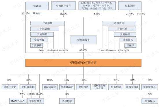 2015年8月4日公司整体变更设立为股份有限公司。实控人及董事长张建成直接、间接持有爱柯迪57.5%股权。