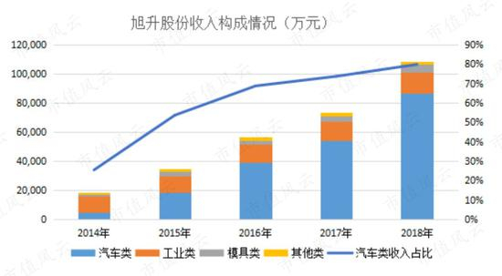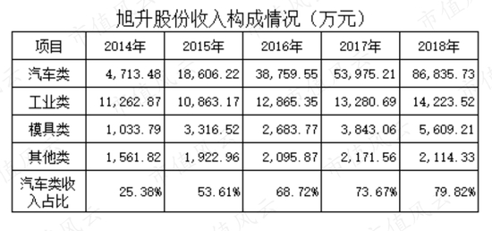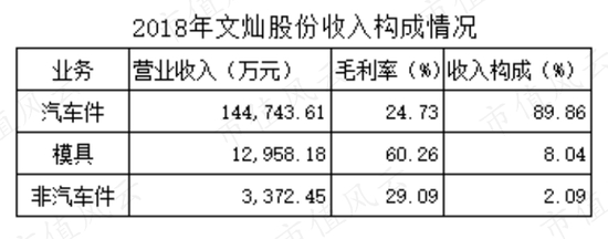 在2018年之前,文灿股份并没有具体分收入结构,全归于压铸件等业务,2018年分为汽车件、模具、非汽车件等业务。