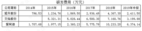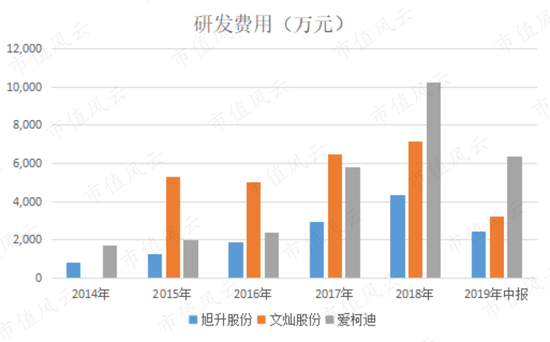 从研发投入金额来看,爱柯迪增长很快,2018年超过1亿元,文灿股份出现小幅增长,旭升股份的研发投入最少。