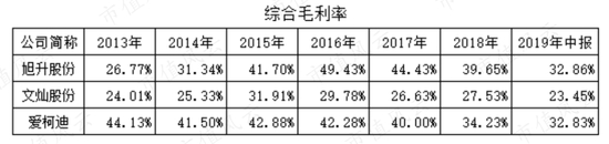 综合毛利率下降导致3家公司盈利在2019年中报出现不同程度的下降。