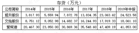 文灿股份的存货增长不大,2018年旭升股份的存货超过前者。