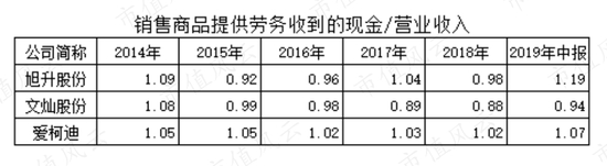 从上图表可清晰看出,文灿股份自2016年以来均低于1.0,说明该公司的回款上或存在问题;而爱柯迪长期保持在1.0以上,说明回款良好;旭升股份在2015-2018年低于1.0,但2019年中报快速上升至1.19,说明回款情况发生改善。