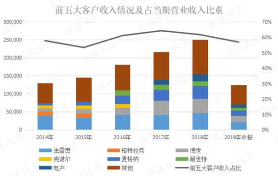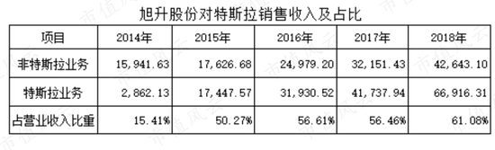 而特斯拉则成为其单一大客户,2018年有4.26亿元来自特斯拉,占当期营业收入的61%。