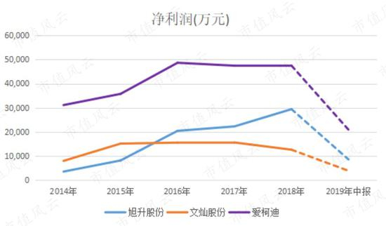 从2019年中报看,旭升股份和文灿股份出现非常明显的下滑。