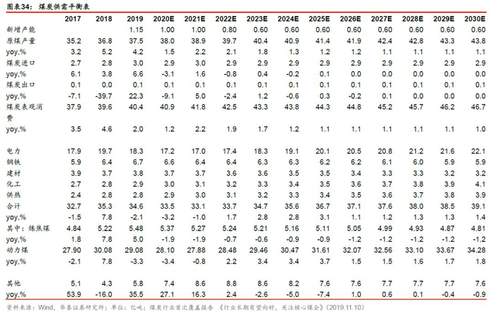 我们预测:2020-2022年是水电、核电、风电的投产高峰,期间燃煤发电、动力煤需求会受到压制,叠加新增的低成本煤炭产能,动力煤价可能持续低迷;前期低迷的煤价可能压制煤炭投资,2023-2025年新增煤炭产能少及新增清洁能源发电装机少,期间有望成为燃煤发电、动力煤需求的黄金期;中长期粗钢产量将维持低增速,叠加废钢产量增加、替代生铁,焦炭、焦煤需求将下行,我们对焦煤价格不乐观。