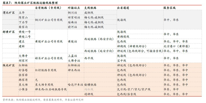公司矿区配套铁运不断完善。公司控股红柠线(51%)、参股黄陵专用线,陕煤化集团控股靖神线、榆横线、冯红线(在建),参股浩吉线、包神线及陕西省铁路集团。