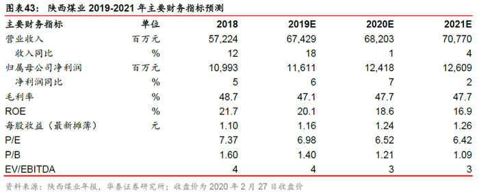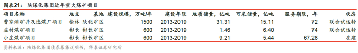 公司有新增产能,控股股东资源储备丰富。控股的小保当及参股的袁大滩产能仍在增长,我们预计公司2020-2021年权益口径在产产能增速分别为9.87%、5.30%。公司是陕煤化集团旗下唯一上市平台,陕煤化集团系陕西19-21年业绩小幅增长省唯一一家省属大型煤炭企业,且陕煤化集团已明确作为鄂尔多斯盆地神府南区的唯一开发主体,神府南区拥有的煤炭资源储量将达到300-400亿吨,陕煤化集团与公司有避免同业竞争的协议。陕煤化集团目前主要煤炭项目包括曹家滩、小庄及孟村,产能合计2700万吨,且陕煤化集团还有正在规划中的尔林兔、小壕兔井田,设计产能分别为3000、1400万吨。
