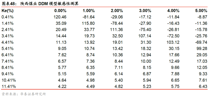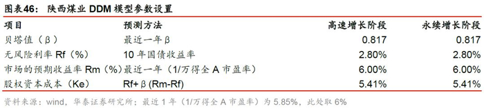 因政府鼓励长协制及公司采用指数等定价方式,价格波动小,且近年产量有增长,业绩相对稳定,公司历史分红率45%,故采用DDM模型估值。