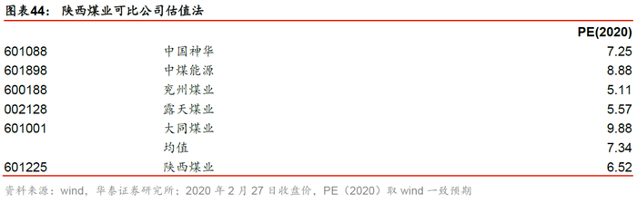 考虑规模等因素,我们选择中国神华、中煤能源、兖州煤业、露天煤业、大同煤业为可比公司,可比公司PE(2020)均值7.34,公司EPS(2020E)1.24元,则目标价9.10元。