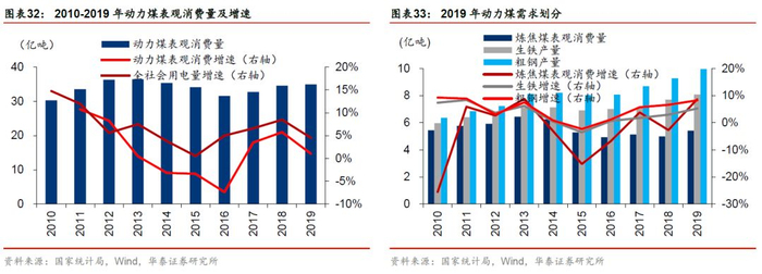 据Wind,2019年,动力煤产量32.76亿吨(yoy+0.9%),进口量2.25亿吨(yoy+3.8%),表观消费量34.97亿吨(yoy+1.0%),炼焦煤产量4.69亿吨(yoy+7.9%),进口量0.75亿吨(yoy+14.8%),表观消费量5.42亿吨(yoy+8.7%)。