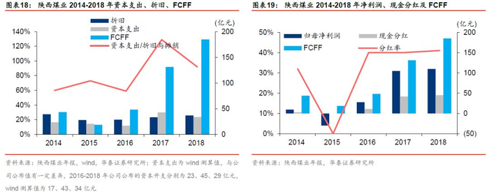 公司资本开支将下行。2018、2019年公司资本开支、计划资本开支分别为28.75、20亿元,主要用于小保当、神渭管道等。小保当1号矿井已于2018年进入联合试运转,小保当2号矿井将于2020年进入联合试运转。预计2021年后公司资本开支将下行,FCFF有望维持在200亿左右的规模,分红能力将进一步提高。