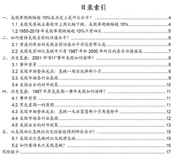 一、美股单周跌幅超10%在历史上是什么水平?
