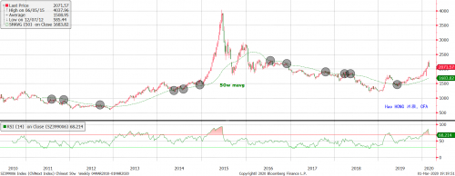 短期而言,我们要回答的问题是,在经历了如此巨大的下跌之后,市场下一步会怎样走?在我们之前的研究报告《中国市场预测权威指南》(20190920)中,我们讨论了850天移动平均线在预测市场周期中的作用。简而言之,850天的市场周期反映了经济周期的运行。一个3.5年的经济周期约等于3.5年x 12个月x 20.2天= 一个约850天的市场周期。