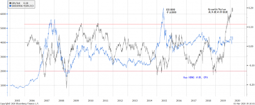 过去两周美国市场经历了史诗级别的崩盘:自1896年以来,发生这样级别的暴跌的可能性仅为~0.1%;市场下跌和VIX波动率指数飙升的速度是有数据记录以来最快的;而10年期美国国债则处于历史最低水平。尽管如此,中国股市一开始却挺过来了。在春节后的首个交易日出现历史性暴跌后,中国市场的主要股指收复了大部分失地,创业板甚至还创下新高——直到上周五,在全球股市遭遇历史性抛售之际,所有中国股指再次大幅下跌。