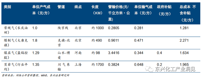 我们选取了四个能代表各类天然气行业平均开采成本的气源,核算其销售成本并与目标市场门站价做比较: