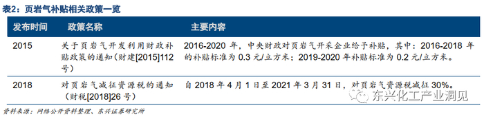 页岩气指赋存于以富有机质页岩为主的储集岩系中的非常规天然气,根据国际能源信息署(EIA)年发布页岩气资源评估报告,我国页岩气可采资源量达31.57万亿立方米,开采前景广阔。为鼓励页岩气产业的发展,我国对天然气开采实行财政补贴,2019-2020年的补贴标准为0.2元/方,并且给予资源税减征30%的政策优惠。