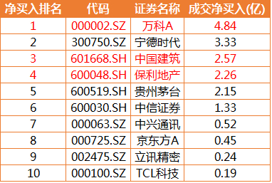 今日,北上资金净买入前十名中,地产龙头万科A、保利地产及建筑龙头中国建筑分别排名第一、第四、第三。