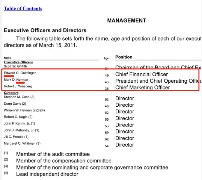 不过,巧合的是,这家公司的首席财务官(CFO)叫Edward G. Goldfinger ,首席运营官(COO)叫Mark D. Norman,两个字各取一半,正好是Edward Norman。
