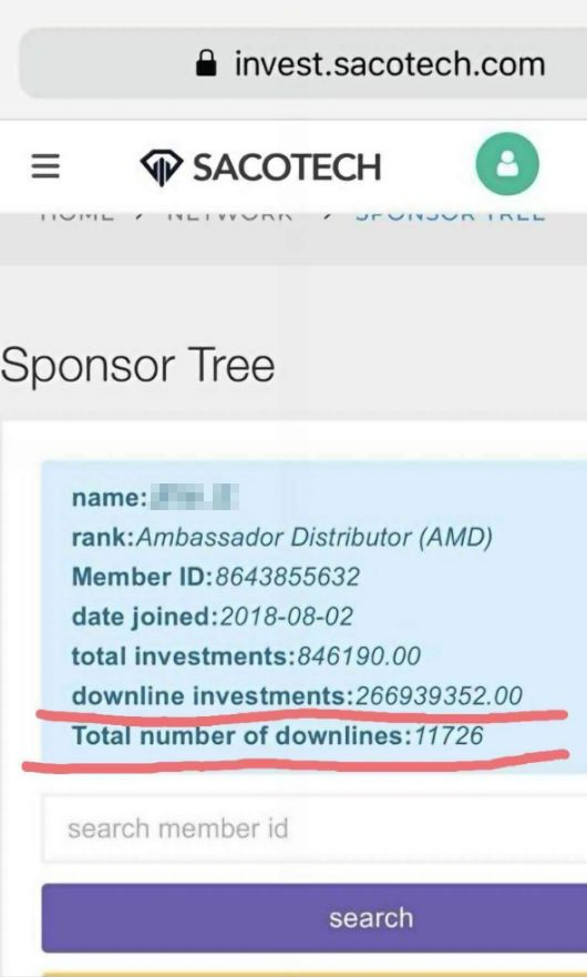 多位投资者告诉记者,他们从宝妈朋友圈透露的护照信息,以及她在星钻拍卖的后台纪录,可以掌握其真实身份和所在地域。宝妈2018年8月加入星钻,星钻大使级别,投资总额84.62万美元,下线投资金额2.67亿美元,下线总数11726个。据称该截图时间是在2019年11月左右,还没有到她的最高时期。宝妈在年底曾发朋友圈,团队人数超过了4万人。但据说宝妈团队在五大团队中还不是最庞大的。