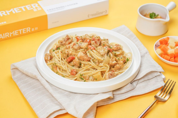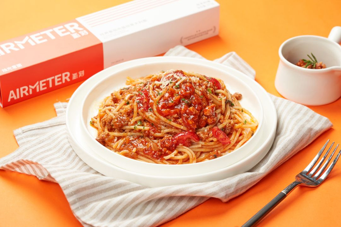 氢刻意面的酱料包,特意邀请了米其林二星总厨进行口味研发,经过13次配方调整,7次工艺调整,反复打磨口味,最终推出了4种口味酱包:番茄肉酱、黑椒牛柳、咖喱鸡肉、奶油培根。